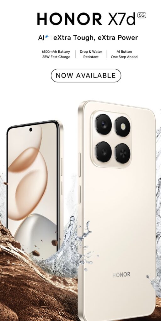 The HONOR X7d 5G sets a new benchmark for durability with SGS-certified Premium Drop Protection and IP65 Water Resistance, ensuring the device can take the knocks of